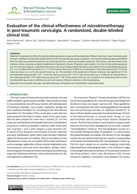 Evaluation of the clinical effectiveness of microkinesitherapy in post-traumatic cervicalgia. A randomized, double-blinded clinical trial.